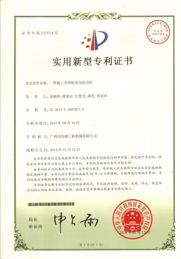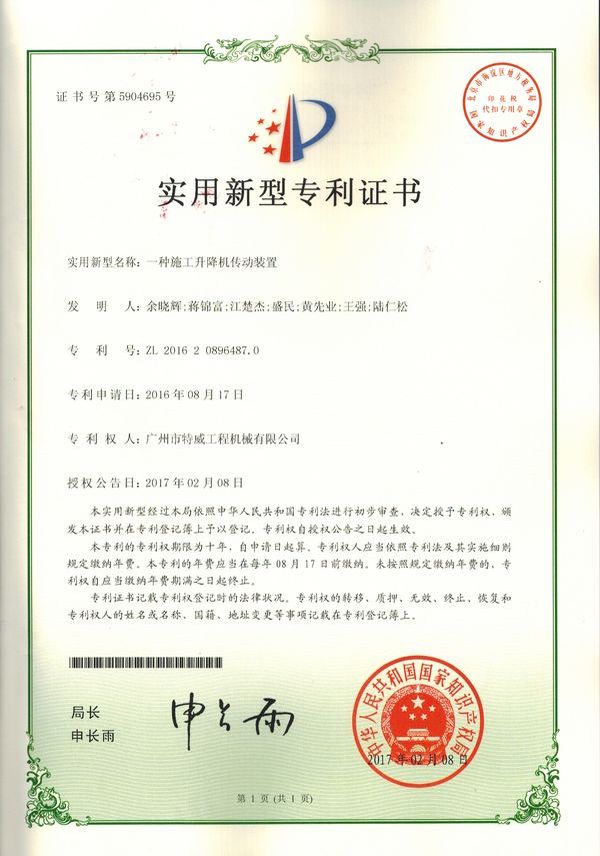 廣州市特威工程機械有限公司地處廣州市白云區神山鎮,廣清高速神山出口附近,是一家施工升降機的專業生產廠家。公司成立于2011年,占地100000多平方米,注冊資金1060萬元,現有員工300余人其中工程技術人員33人,高級技術人員52人。